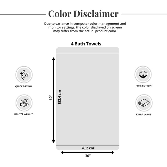 Tens Towels Pack of 4 Extra Large Bath Towels 30 x 60 Inches, 100% Cotton, Larger & Lighter Weight, Quicker to Dry, Super Soft and Absorbent, Perfect for Bathroom, Beige