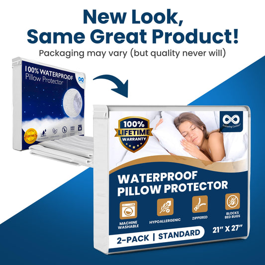 100% Stain Resistant & Waterproof Standard Size Pillow Protectors with Zipper Set of 2 - Bed Bug & Dust Mite Proof White Pillowcases - Breathable, Comfortable Covers for Pillows, 21 x 27 Inches