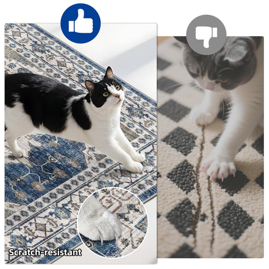 Kitchen Sink Rugs Set 0f 2: Washable Non-Slip Hardwood Floor Mat for Stove Dishwasher Fronts Soft Stain Resistant Carpet for Cooking Area & Fridge Boho Home Decor for High Traffic Area(2x3+2x4,Blue)
