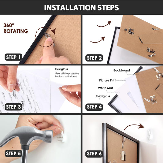Fixwal 8x10 Picture Frame Set of 6 with Shatter Resistant Plastic Glass, Thin Border and Light Weight Photo Frames for Wall or Tabletop Display, Black