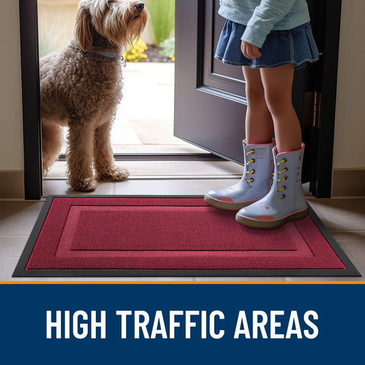 OLANLY Front Door Mat Indoor Outdoor Entrance, Waterproof All-Season, All-Weather Doormat, Sturdy Natural Rubber, Low Profile, Easy Clean Patio Porch Entryway Mat, 33x21, Burgundy