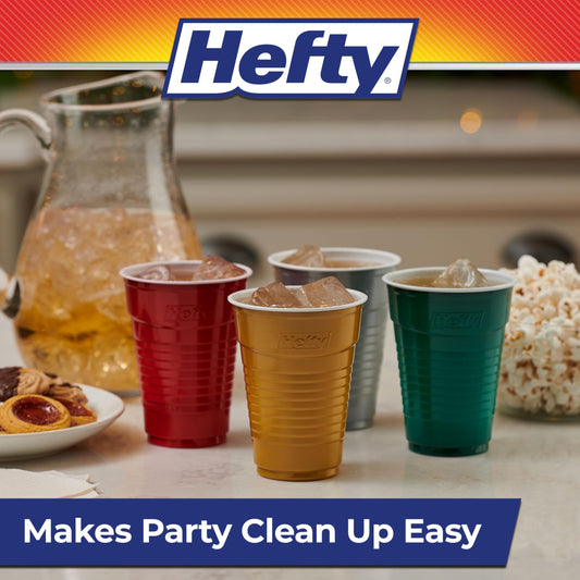 Hefty Party On Disposable Plastic Party Cups, 80 Count, 16 Oz Cups in Assorted Colors for Gatherings, Parties, and More, Textured Sides for Easy Gripping, Strong and Durable