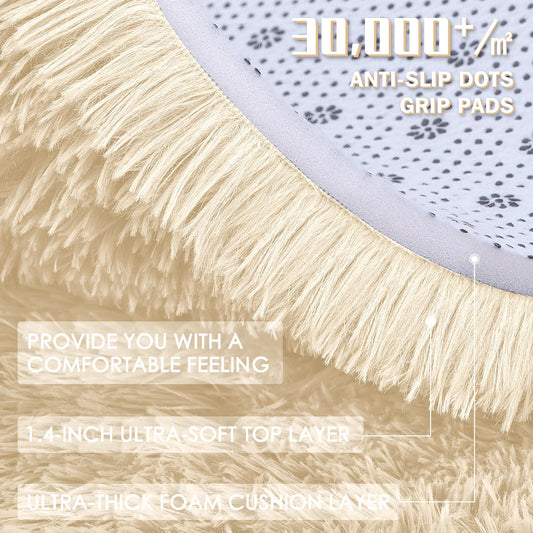 Ophanie Round Rugs 8Ft Ivory Circle Area Rug, Aesthetic Room Decor, Fluffy Fuzzy Bedroom Carpet, Plush Soft Shaggy Cream Living Room Rugs for Kids Home Decor, Nursery