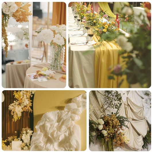 ButterMelt 4 Pack Beige 10ft Cheesecloth Table Runner, Boho 35x120 Inch Long, Gauze Table Runner Decor for Baby Shower Bridal Shower or Wedding Party