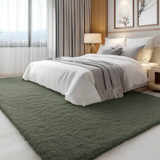 OLANLY 5x8 Machine Washable Large Area Rugs for Living Room, Bedroom, Soft Fluffy Shaggy Bedside Rug, Indoor Floor Carpet for Kids Girls and Boys, Dorms, Nursery, Home Decor Aesthetic, Olive Green