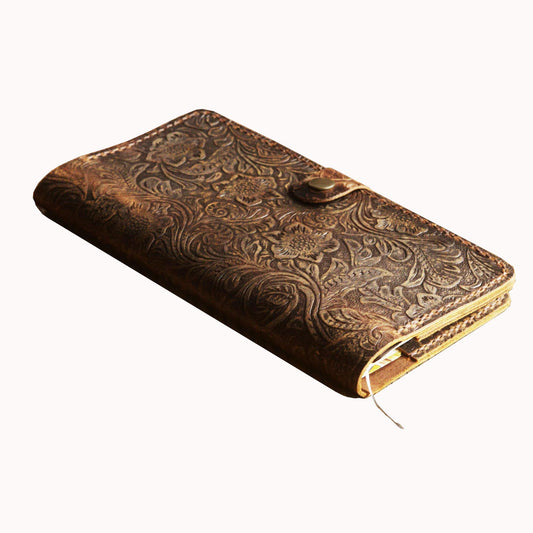 Personalized Leather Hobonichi Weeks Cover, Mega Weeks Cover, Notebook wallet, Travelers notebook - Distressed Tooled Leather- 311H