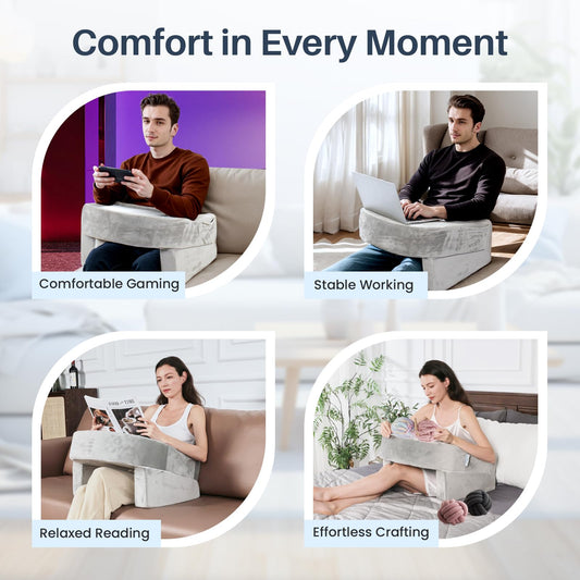 Weighted Idea Lap Desk Pillow with Arm Rest – Extra Large Memory Foam Support for Reading, Gaming, Working & Sitting in Bed, Couch or Floor – Laptop Cushion with Removable Washable Cover