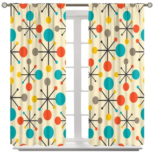 JESTRONRY Mid Century Curtains,Mid Century Fifties Modern Retro Colors Pattern Blackout Rod Pocket Window Drapes for Living Room Bedroom Kitchen Bathroom Home Decor 52x84in