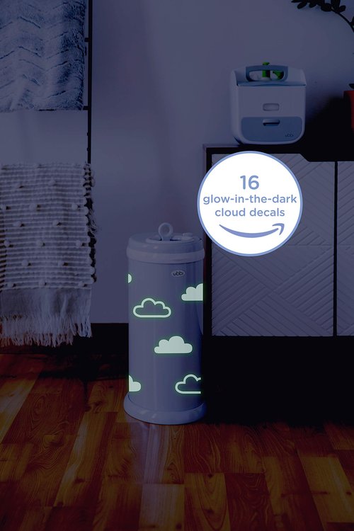 Ubbi Glow-in-The-Dark Cloud Peel and Stick Decal Stickers, Decorative Sticker for Diaper Pail or Baby Nursery