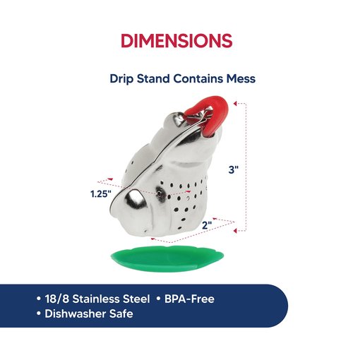 HIC Tea Infuser with Drip Tray, Frog and Lily Pad, 18/8 Stainless Steel with BPA-Free Plastic