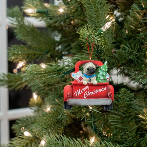 Kurt Adler A1940PU Pug in Back of Truck Ornament for Personalization, 5-inch High, Resin for Christmas
