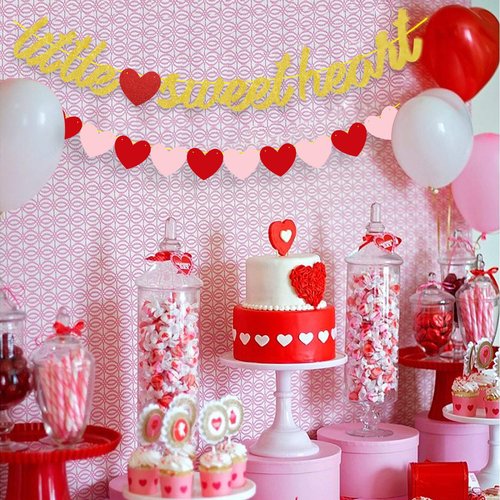 Little Sweetheart Banner Red Pink Heart Garlands Gold Glitter Valentine's Day 1st Birthday Party Baby Shower Decoration
