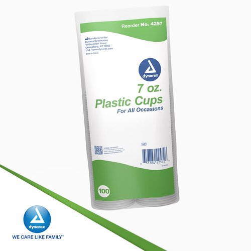 Dynarex Disposable Clear Drinking Cups - Single Use Plastic Cups for Office, Hospital, Clinic - Beverage Containers with Rolled Rim, Ribbed Center - 7oz, Bulk Supplies Box of 100