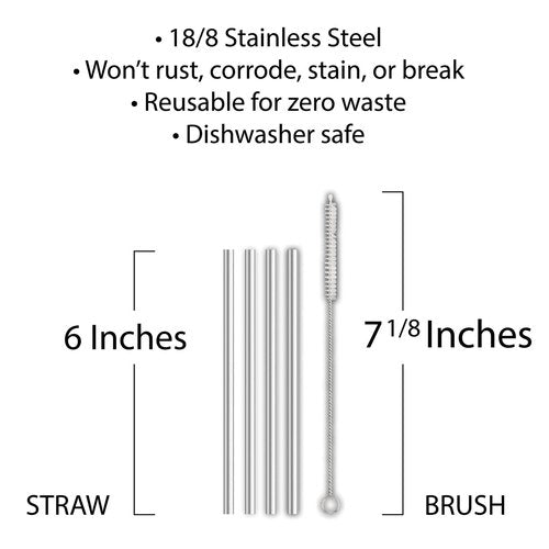HIC Kitchen Bar Reusable Cocktail Straws with Cleaning Brush, 18/8 Stainless Steel, Set of 4