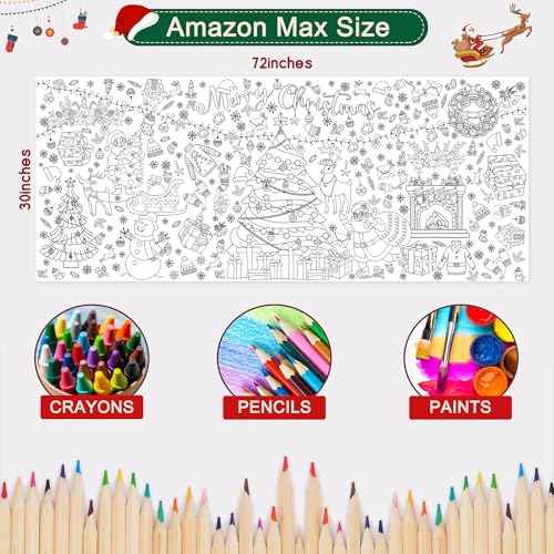 Xmas Giant Coloring Tablecloth/Poster-Christmas Crafts for Kids-30 x 72 Inches Jumbo Paper Coloring Banner Gifts for Kids Activities Games Toys Party Classroom Decor Christmas Decorations