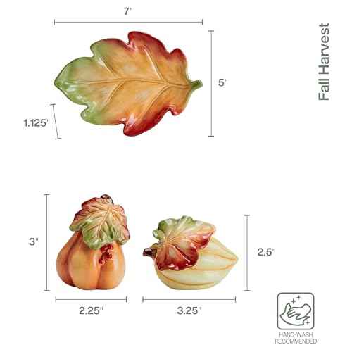 Fitz and Floyd Fall Harvest Salt and Pepper Shaker with Tray, 3 Piece Set