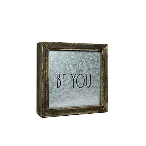 Rae Dunn ¡°Be You¡± Desk Plaque - Inspirational Message Desktop Sign for Home and Office D?cor - Motivational Vintage Display for Cubicle, Work Space - Chic Distressed Wood and Metal