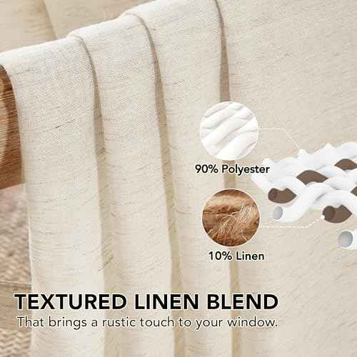 Deconovo Faux Linen Semi Sheer Curtains, 52x84 Inch Length, Set of 2 Back Tab Panels, Light Filtering Voile Window Treatment, Airy Privacy Farmhouse Drapes for Living Room Bedroom Office Cafe