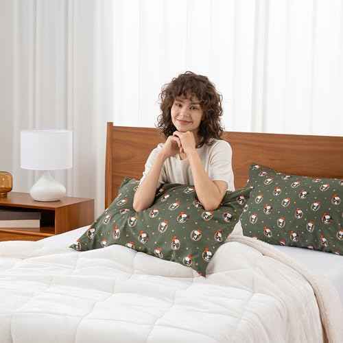 Berkshire Blanket Peanuts¢ç Snoopy Pillowcase Set of 2, 20'' ¡¿ 30'' Soft Breathable Microfiber Pillow Covers with Envelope Closure Design(Queen, Snoopy Giddy Up Cowboy Sheets Moss)