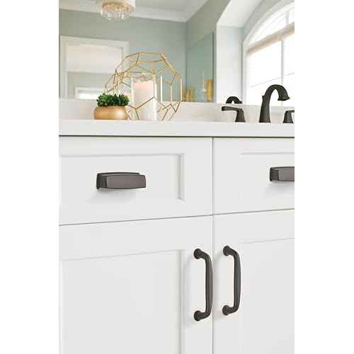 Amerock | Cabinet Cup Pull | Black Bronze | 3-3/4 inch (96 mm) Center to Center | Kane | 1 Pack | Drawer Pull | Drawer Handle | Cabinet Hardware