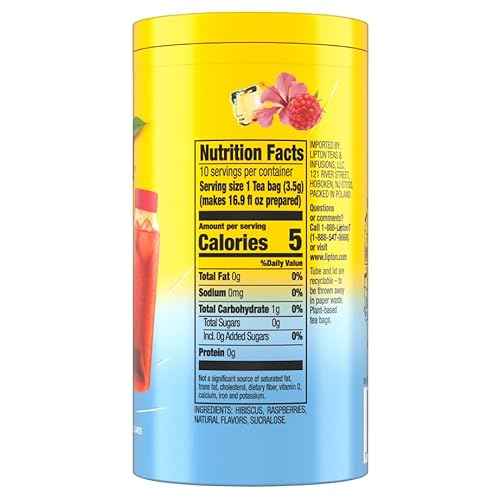 Lipton Ice Tea Infuse Hibiscus Raspberry Cold Brew Tea Bags for On-The-Go or At Home 10 Count (Pack of 1)