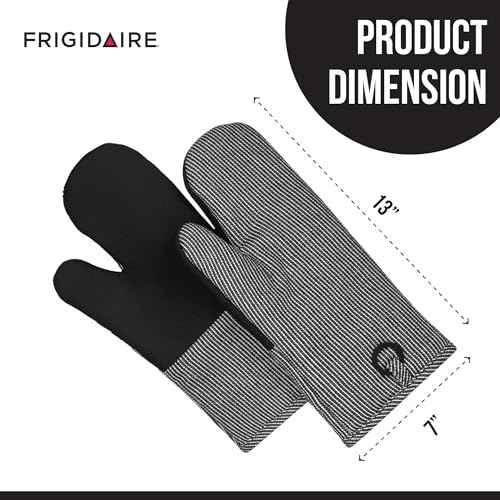 Frigidaire Layla Cotton and Neoprene Oven Mitts, Heat Resistant, Anti-Slip, Machine Washable,13¡±x7¡±,Black,Set of 2