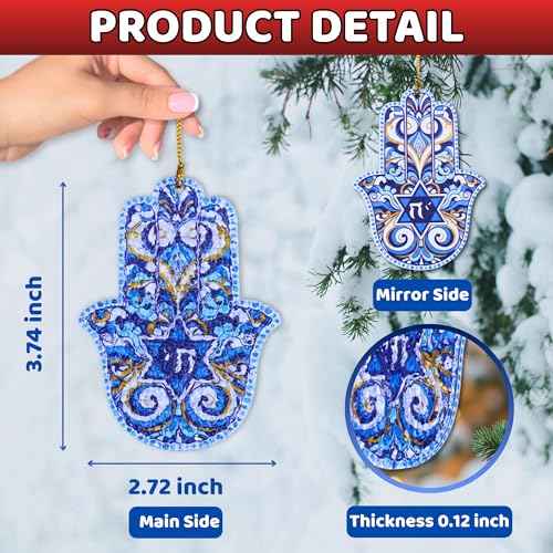 Hamsa Hand Ornament Stained Glass Effect Judaica Gift Jewish Art Star of David Hanukkah Decorations Hamsa Wall Decor Hanukkah Gifts Ornament Car Christmas Decoration Accessory