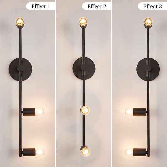 Yenigy Bedroom Wall Sconces, 3 Lights Matte Black Vintage Lighting, Modern Wall Mounted Lights, Porch Hallway Wall Lamp for Living Room Bedroom Bathroom Mirror (E26 Base)