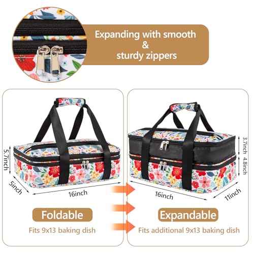 Insulated Casserole Carrier for Hot or Cold Food,Double Decker Food Carrier Expandable Lasagna Holder for Transport Travel Picnic Cookouts Potluck,Pioneer Woman Dish Carrier Fits 9" x 13" Baking Dish