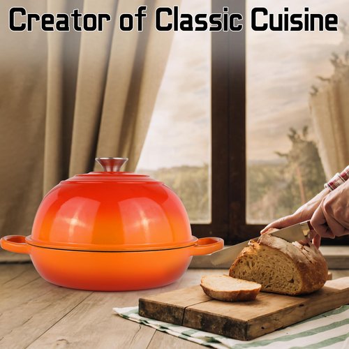 Enameled Cast Iron Bread Oven, Dutch Oven Pot with Lid, 10" Bread Dutch Oven for Sourdough Bread Baking, 6 Quarts Bread Pan with Dome Lid, Non-stick Cookware for Homemade Bread, Orange