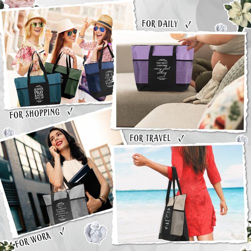 Paterr 10 Pcs Christian Tote Bags Bulk with Pocket Zipper for Women Bible Study Religious Church Gifts for Mother's Day(Fresh Color,Simple)