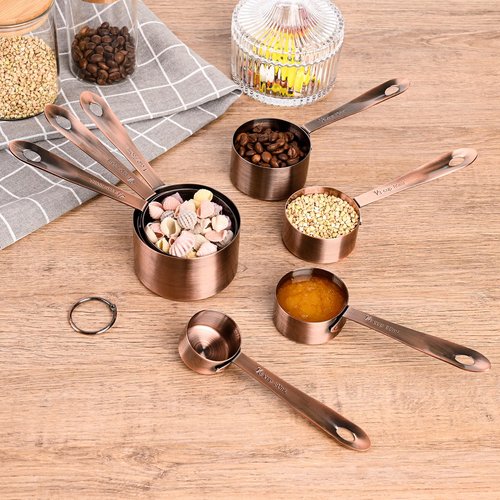 Smithcraft Measuring Cups and Spoons Set, Copper Measuring Cups and Spoons Set for Baking & Kitchen, Stainless Steel Measure Cup and Spoon for Dry &Liquid, Metal 7 Measure Cups&6 Spoons