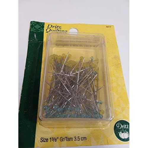 Dritz Quilting 3417 Crystal Glass Head Pins, 1-3/8-Inch (100-Count), Blue and Yellow