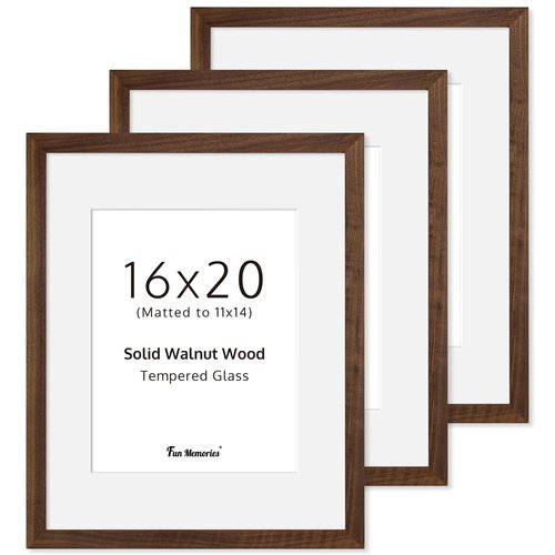16x20 Picture Frames Set of 3, Farmhouse Solid Walnut Wood Frames 16 x 20, 16"x20" Wood Frames for Wall, 16x20 Picture Frame with Mar for 11x14, 16x20 Frame Real Glass, Wall Gallery Collage Set
