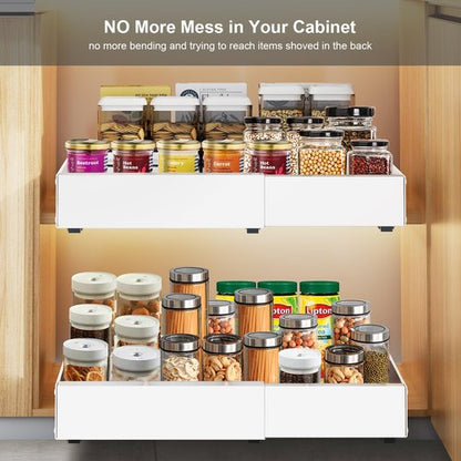 2-Pack Pull Out Cabinet Organizer Expandable, 21" Adhesive Pull Out Drawers Cabinet Roll out Shelves( NOT for Cabinets with Lips/Frame)for Kitchen Pantry Bathroom, Peel & Stick Pull out Drawers