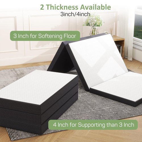 - 【Cost Effective】 Each folding mattress are certified by CertiPUR-US, meet the highest requirements of the industry. The collapsible mattress pad is available in 2 thickness options. 3 inch is great for a slight addition of cushioning and softening on floor. If you need substantial support, the 4 inch one is available for your preference