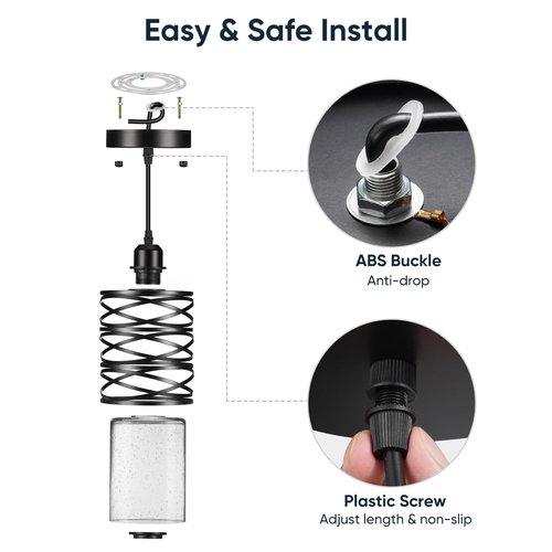 - 3 Variety Uses and E26 Base: The E26 hanging light fixtures spiral cage or glass shade can be used alone, uitable for use in a variety of scenarios.This light uses a UL certified E26 base, compatible with any LED / CFL / incandescent / Edison bulbs, 60W MAX each bulb. (Bulb not included).The glass hanging lights can provide good lighting and atmosphere to your home.