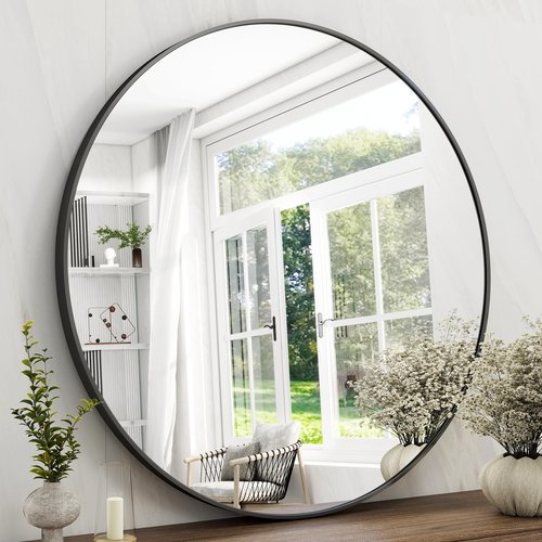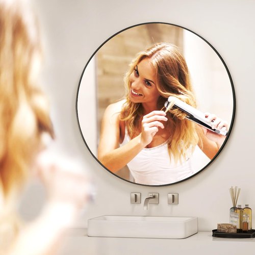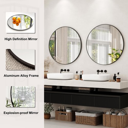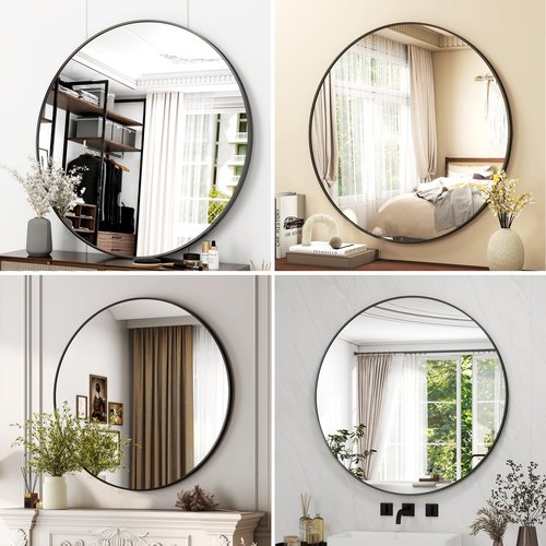 - High-Quality Aluminum Alloy :Our round mirror is crafted with durable aluminum alloy combined with an oxidation process. Its minimalist design and classic matte texture perfectly complement any room and match your home decor.