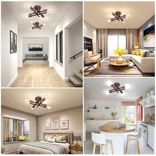 - 【Industrial & Modern Bronze Ceiling Light】Our 4-Light semi flush mount ceiling light constructed with retro oil-rubbed bronze finish which adds an antique look and fits well in stylish high-class room decor. This metal close to ceiling lighting also matches with different home styles when work with different E26 bulbs(Not Included) such as farmhouse, industrial, mid-century, rustic, retro, vintage. What a fantastic ceiling fixture for your home and new decoration