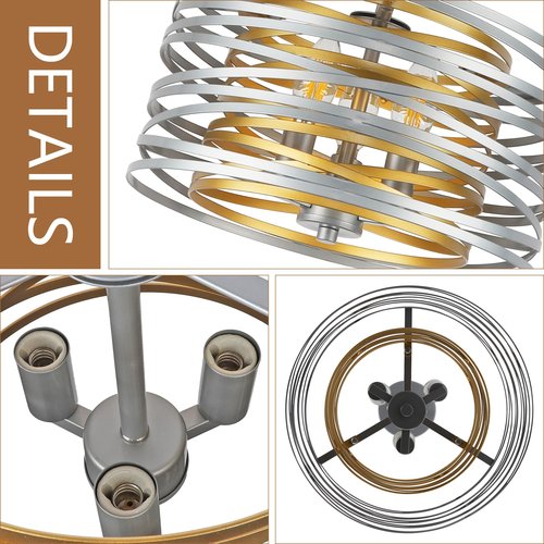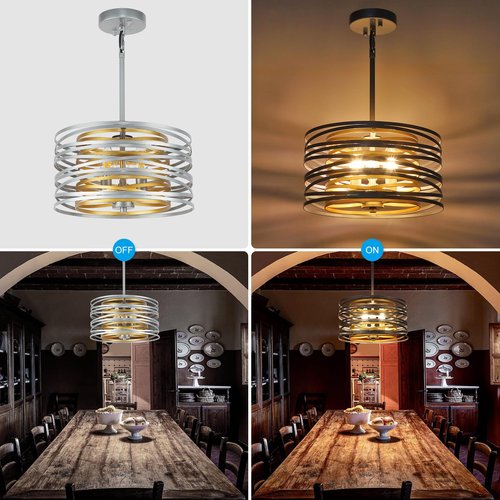 - Design: Silver drum chandelier are made by highly skilled craftsmen. The classic combination of silver and gold, the stylish retro double-layer drum frame design, makes this drum ceiling light full of moden farmhouse atmosphere. Perfect for dining room, living room, kitchen island, entryway, hallway, foyer, etc.