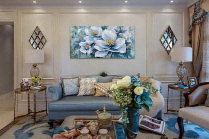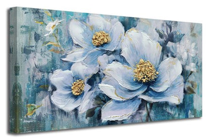 - Flowers canvas wall art: Large 48"x24"(120cmx60cm) gallery wrapped with hand painted textured. The vibrant colors and intricate details of this piece will bring a sense of tranquility and peace to any room.