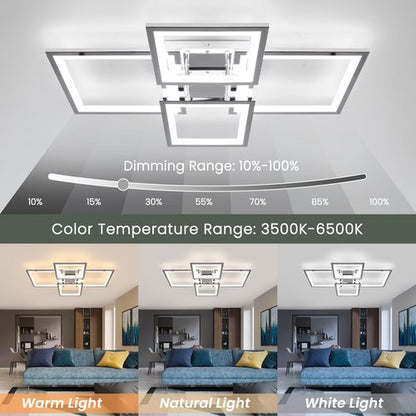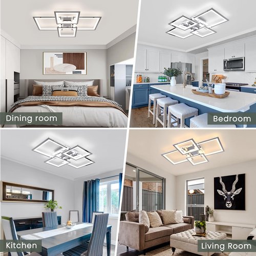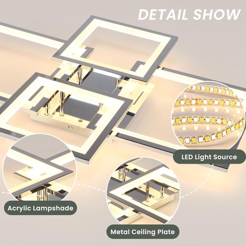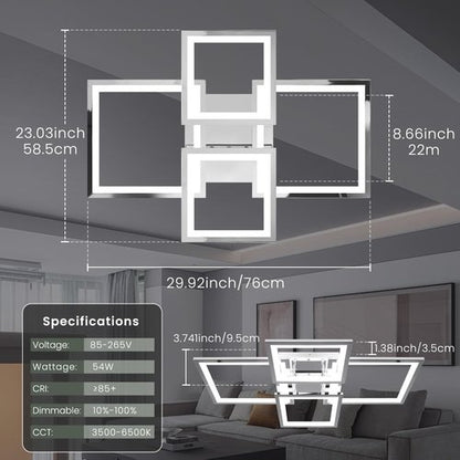 - 【Specifications】LED modern ceiling lamp size: L29.92 x W23.03 x H3.74 inch, body color: chrome , voltage: 110V, power: 55W, color temperature: 3500K-6500K dimmable, applicable The range is 107-161 sq.ft.