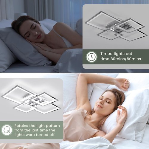 - 【Dimming with Remote&APP】Modern light fixtures can control adjustable color temperature 3000K-6500K(warm white, neutral white, cold white), brightness (10%-100%). You can use the remote control and APP to adjust the color temperature and brightness according to your preference, with timer off, memory function and night light mode.