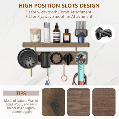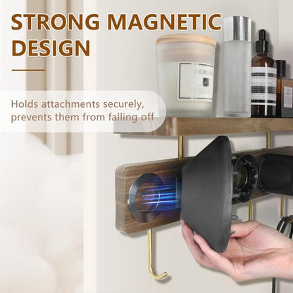 Affogato Hair Dryer Wall Mount Holder Compatible with Dyson Supersonic, HD16 Blow Dryer Accessories and Attachments Organizer Storage Rack for Bathroom Bedroom, Wood