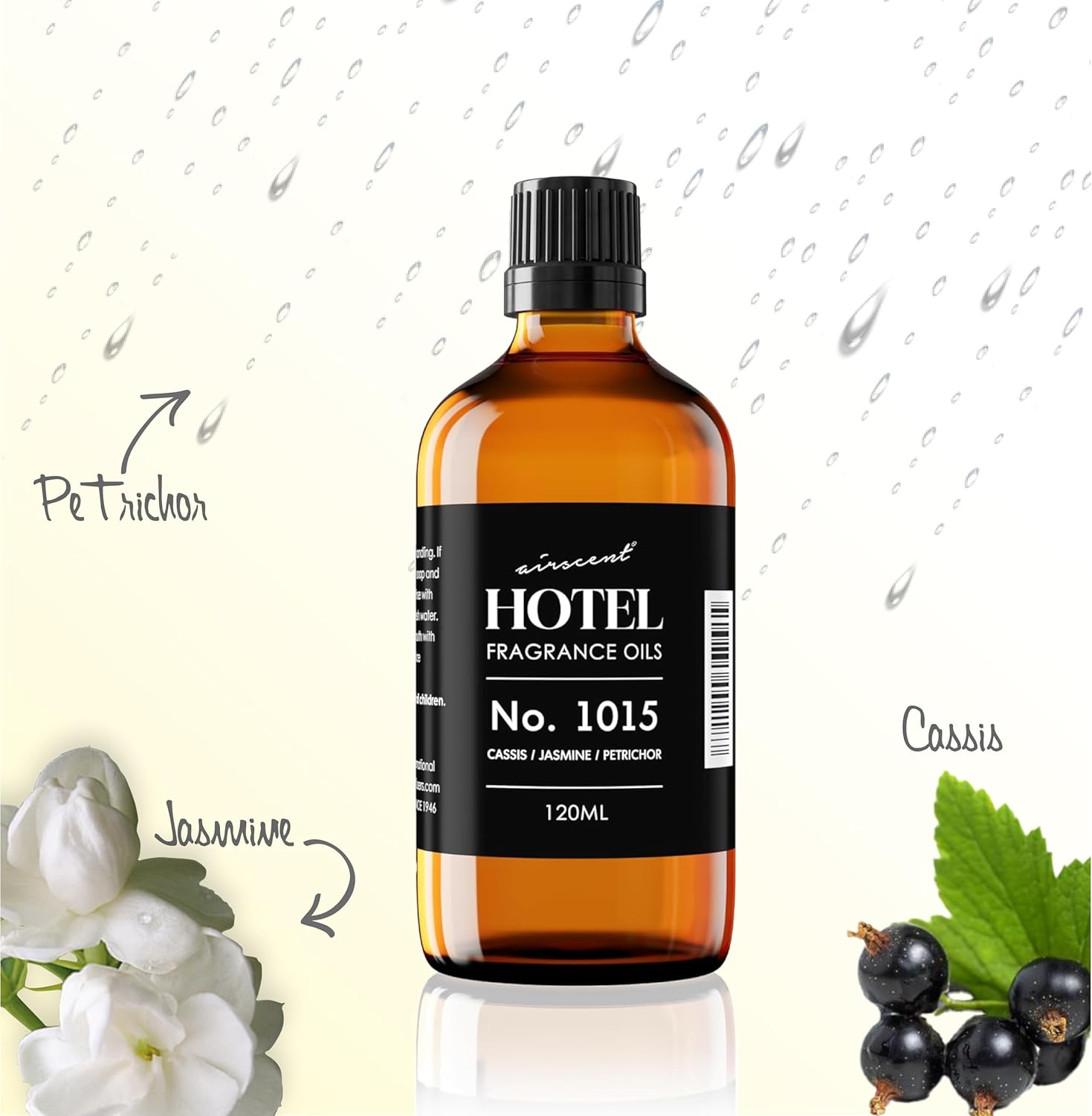 AirScent Hotel Diffuser Oil No. 1015 - Premium Cassis Jasmine Petrichor Fragrance - 10 mL Glass Dropper Bottle