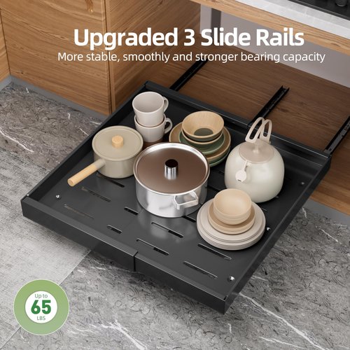 - 【Easy Installation】The pull out drawer for cabinet organizer fixed with Nano adhesive. and it also comes with screws included in the package for additional mounting options.