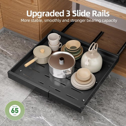 ALANSON 21'' Deep Pull Out Cabinet Organizer Expandable, Pull out Drawers for Cabinets Adhesive with Film, Heavy Duty Sliding Kitchen Organizers and Storage (Black 2 Pcs, 21“Deep)
