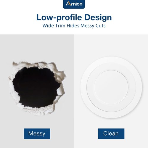 Amico 24 Pack Goof Rings for 6 Inch Recessed Lights White Can Light Goof Trim Ring, Outer Diameter 8.6-inch, Inner Diameter 6.2-inch, Durable Plastic Design, Flush Mount