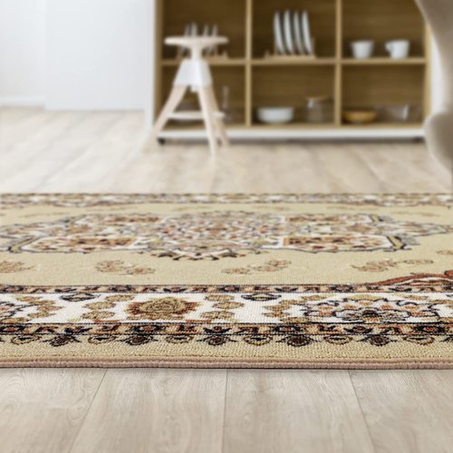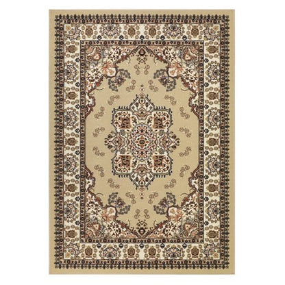 Antep Rugs Alfombras Oriental Traditional 5x7 Non-Skid (Non-Slip) Low Profile Pile Rubber Backing Indoor Area Rugs (Beige, 5' x 7')