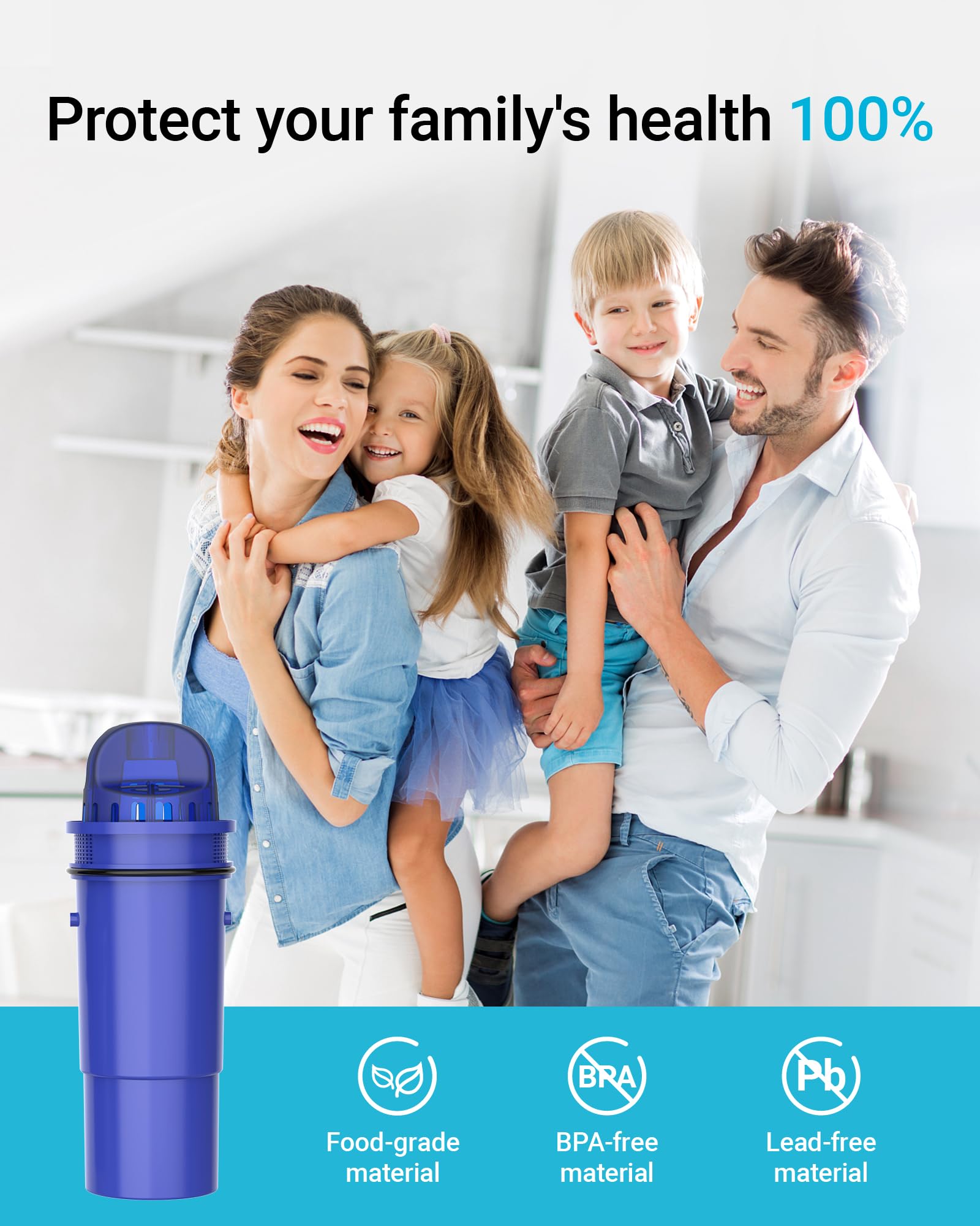 - Premium filter material: AQUACREST filter utilizes 100% coconut shell granular active carbon. When compared to a typical granular active carbon, the 2 times larger surface area and additional micro-pores meticulously filter more harmful substances and fresher water taste.